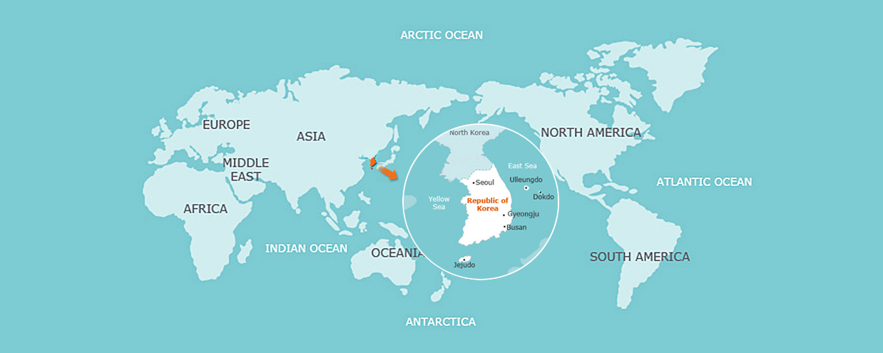 The Korean peninsula, roughly 1,030 km long and 175 km at its narrowest point, has a total land area of 100,033 km2 and is located in Northeast Asia. With Seoul as its capital city, Korea is neighbored by Japan to the east, China to the west and the Democratic People’s Republic of Korea (North Korea) across the northern border.